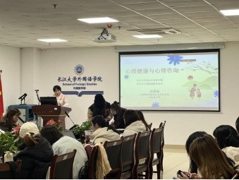 此外,培训还介绍了长江大学提供的心理援助资源,包括设施设备和专业咨询师团队,以及线上线下预约方式,鼓励学生在遇到心理困扰时,积极寻求帮助,在身边同学遇到困难时给予共情倾听和关爱,并通过四级心理危机干预机制,积极寻求老师和心理中心专业人士的帮助。