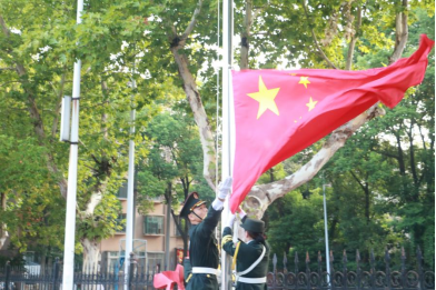 (通讯员 田源)9月2日,学院师生齐聚田径场,举行了庄严而隆重的升国旗仪式。学院党委副书记程坤、全体辅导员、大二大三及研究生同学们参加了本次活动。