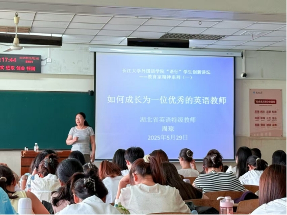 (通讯员 蔡晓宇)为赋能英语师范专业学生,助力其明晰成长路径、培育教育家精神,5月29日,米兰网页版“语行”学生创新讲坛——教育家精神系列(一)在12教202教室顺利举行。本次讲座由王娟老师主持,特邀湖北省英语特级教师周琼,以“如何成长为一位优秀的英语教师”为主题展开深度分享,米兰体育(中国)英语(师范)专业本科生、学科英语硕士生参加。