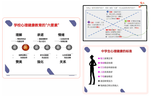 程坤介绍了青少年生身心发展的特点并仔细分析了高中生常见的心理问题,同时讲解了危机干预与自杀预防以及心理教育和干预策略等应对措施,使老师们明白学生在成长过程中可能会出现的心理健康问题,引导全体教师要在心理健康教育中以预防、疏导为主,在尊重、信任和理解的基础上,与学生平等地沟通、交流、呵护学生健康成长。