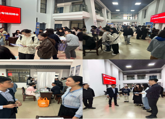 招聘会现场设在文科楼712门口大厅,9家用人单位通过展位展示、企业宣讲、现场面试“一站式”对接毕业生。各企业展位前,毕业生与企业代表热情交流,投递简历、咨询岗位详情。学院在712会议室同步开展了9场企业宣讲会,用人单位详细解读行业趋势、岗位要求及职业发展路径,吸引大批学生驻足聆听。学院还专门设立多间独立面试教室,供企业现场考核候选人,部分学生通过面试后与企业达成初步就业意向。