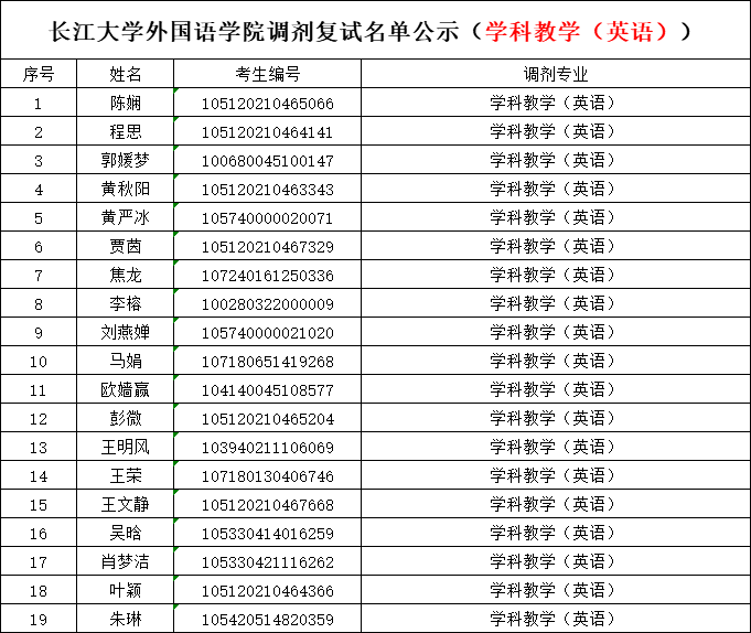 【调剂复试名单公示】米兰网页版调剂复试名单公示(学科教学(英语))