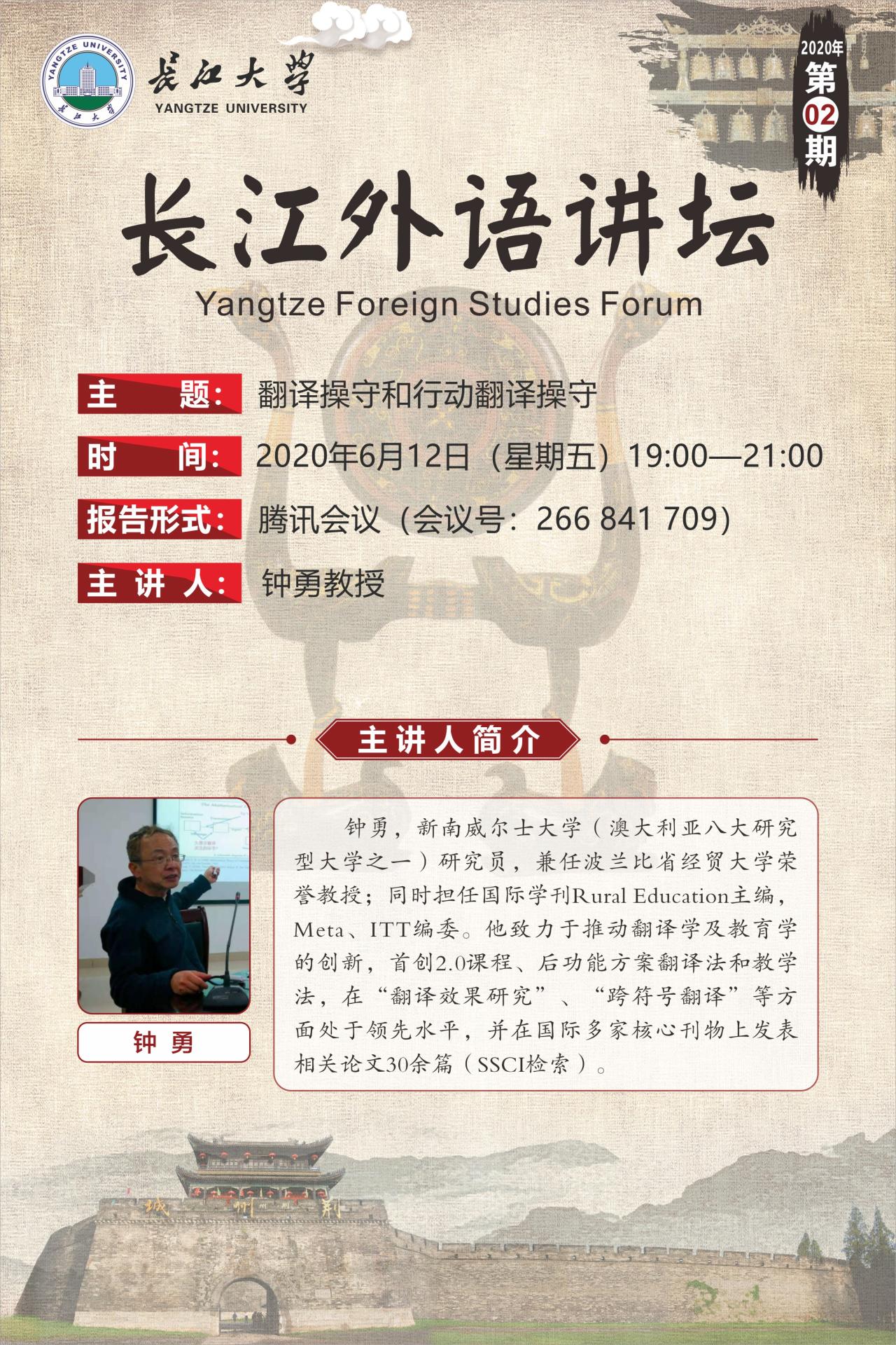 长江外语讲坛(2020年第二讲):翻译操守和行动翻译操守