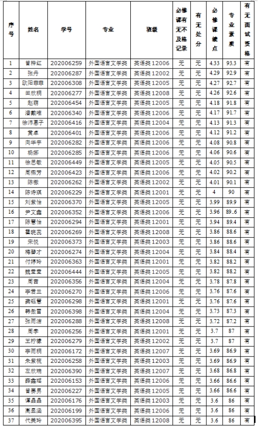 一、经学生本人申请、学院资格审核面试资格学生名单如下