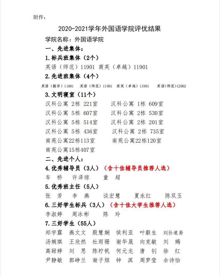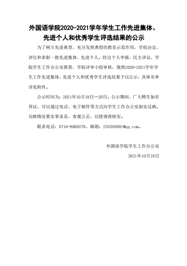 米兰体育(中国)2020-2021学年学生工作先进集体、先进个人和优秀学生评选结果的公示