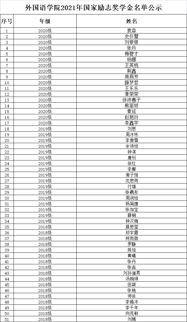 根据《财政部 教育厅等五部门印发<学生资助资金管理办法>》(财科教[2019]19号)、《财政部 教育部 中国人民银行 银监会米兰网页版进一步落实高等教育学生资助政策的通知》(财科教[2017]21号)及《省教育厅 省财政厅等六部门联合印发<湖北省家庭经济困难学生认定工作实施办法>》(鄂教助[2020]1号)的精神,结合我院实际情况,经学生本人申请、班级评议、学院奖助学金评审小组审核、学院党政联席会通过,现将米兰体育(中国)2021年袁森等51名获得国家励志奖学金、纪嘉祺等367同学获得国家助学金的初评名单公示。