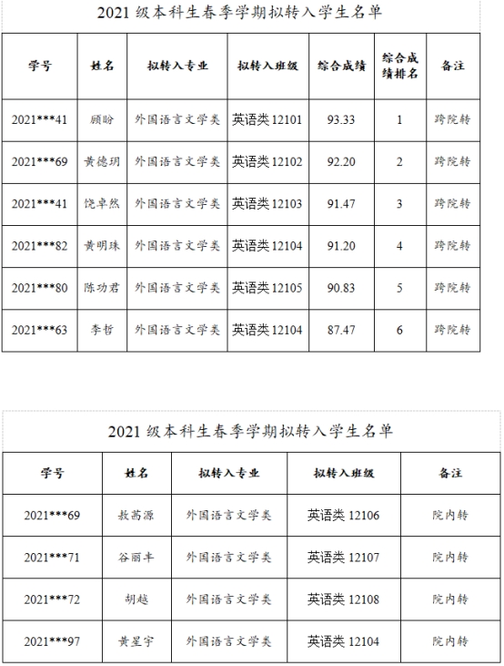米兰体育(中国)2021级本科生春季学期转专业拟接收名单公示