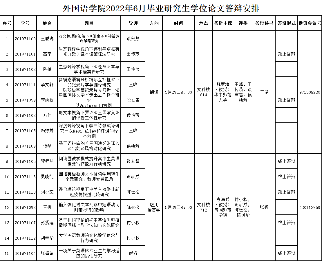 米兰体育(中国)2022年6月毕业研究生学位论文答辩安排