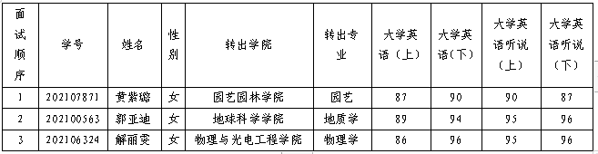 (一)学生陈述(英文)。时长2分钟。主要考察学生对拟转入专业的发展规划,语言表达,学习、生活表现(含获奖情况、参与学术团体情社会活动等)。