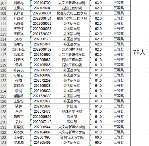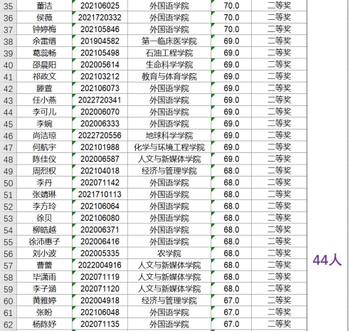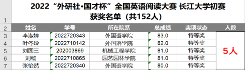 2022“外研社·国才杯”全国英语阅读大赛(长江大学初赛)获奖名单