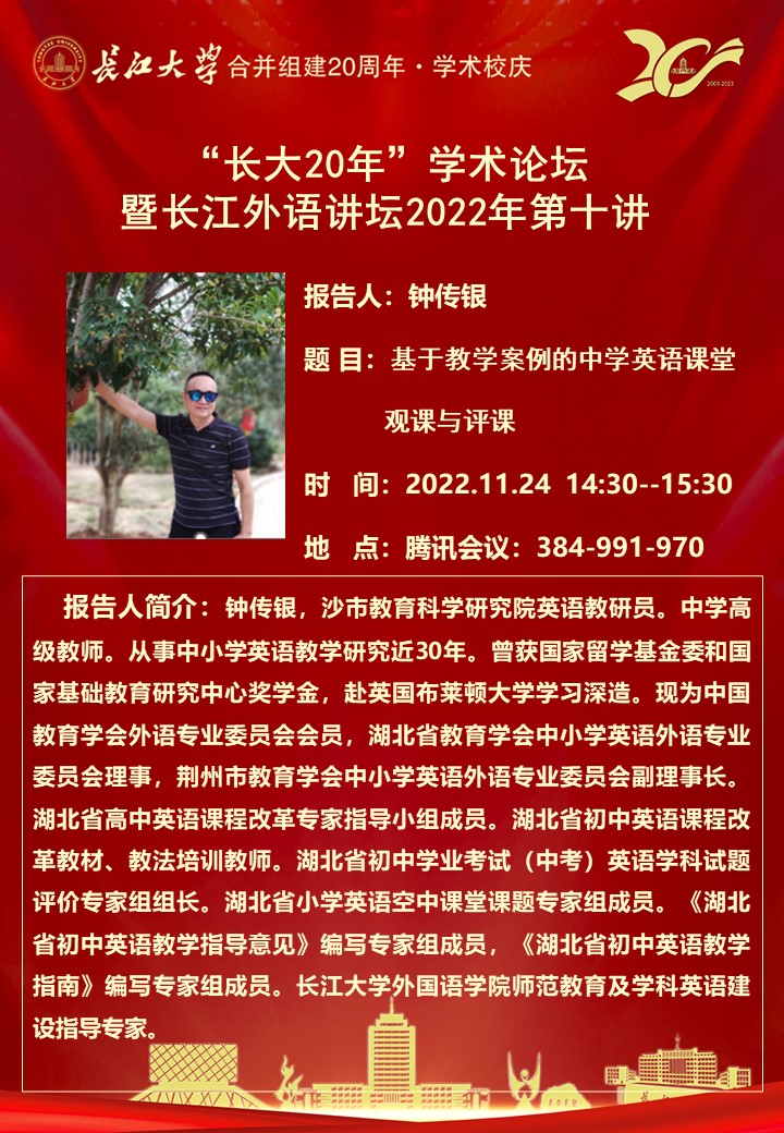 “长大20年”学术论坛:基于教学案例的中学英语课堂观课与评课