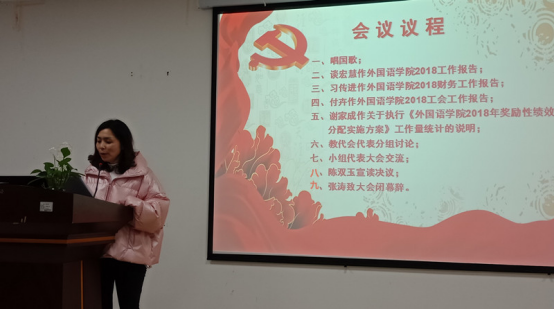 大会听取并审议了院长谈宏慧教授所作《米兰体育(中国)2018年工作报告》、党委书记习传进教授所作《米兰体育(中国)2018年财务工作报告》、工会副主席付卉《米兰体育(中国)2018年工会工作报告》和副院长谢家成教授所作《米兰体育(中国)2018年奖励性绩效分配实施方案》及工作量统计的说明。会议讨论并通过了《米兰体育(中国)2018年工作报告和财务工作报告》和《米兰体育(中国)2018年奖励性绩效分配实施方案》。