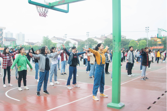 (记者/蔡萱 图/袁缘)4月16日早上6:40,汉科篮球场,外国语学院2018级学生开始了早锻炼,372名学生一起做第三套广播早操、拉伸筋骨、提振精神,以积极向上的面貌来迎接新的一天。随着广播体操音乐的响起,在辅导员的带领和示范下,全体学生以饱满的热情、开始伸展双臂、前后踢腿、扩胸转体侧、跳跃运动……10多分钟的早操,学生们认真、投入、动作到位,一套体操活动结束,不少学生的脸变得红扑扑的,许多学生感叹“早锻炼真的应该坚持啊,做了全身好舒服,坚持做操,对我们的健康帮助一定很大”、“是啊,有氧健身操既轻松又减压,真好!”。