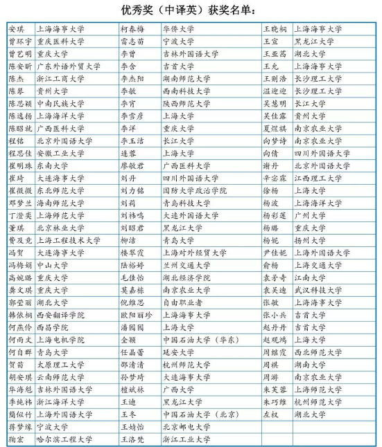 特别值得一提的是,米兰网页版20名学生在此次大赛中获奖:宋俐荣同学在笔译(中译英)的比赛中荣获三等奖,李玉洁、吴慧2名同学获笔译(中译英)优秀奖;陈丽君、陈丽萍、陈子豪、郭忆庆、黄珊珊、黄旑嫣、金倩、雷婧霞、林立、旁媛、彭千、王碧容、王楚豫、项倩宇、徐鲁宁、杨雅涵、周钰等17名同学获笔译(英译中)优秀奖。(获奖名单如下)