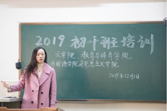 在培训之前,主持人宣读了要求和纪律并简介培训四个内容:学生干部应具备的礼仪知识,班团学生活动组织方法和技巧,学生干部应学会处理的关系以及党的十九大精神。