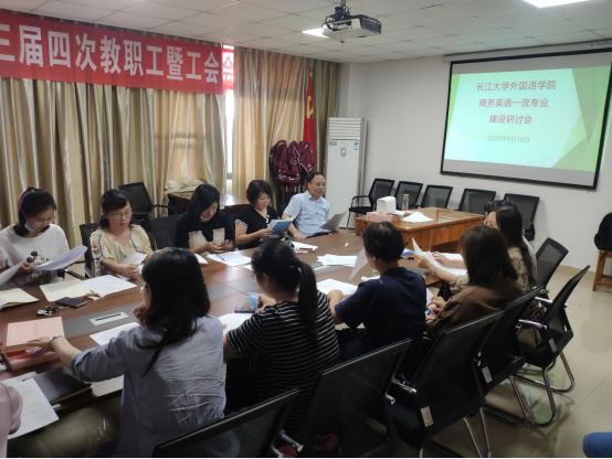 我校商务英语专业于2013年开设,2019年成功获批湖北省一流本科专业,目前正在申报国家级一流本科专业,专业发展势头良好,同时专业建设任重道远,学院领导对此高度重视。会上,谈宏慧院长做主旨发言,对商英英语一流专业建设进行动员和部署,提出以长江大学省级商务英语一流本科专业为对象,整体实施“新文科”背景下一流商务英语本科专业建设的项目规划,并对具体实施方案进行解读。商务英语系教师们按校标研制、课程设置、教师发展、等级考试、平台建设及教学模式研究等方向成立专业建设团队并拟定团队工作章程。彭沂副院长就商务英语产业实验班建设提出指导意见。老师们纷纷就目前专业建设现状,问题和建设实施方案等各抒己见,提出建议,并表示要加强自身理论学习和教研实践,完成从“英语语言教师”到“商务英语专业教师”的转型,多层次形式出成果,为商务英语专业建设竭尽绵薄之力。