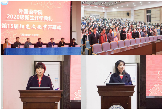 (摄/张芷艺 袁缘 文/韩思洁) 朗朗金秋,丹桂飘香。10月5日晚,外国语学院2020级新生开学典礼暨第十五届“阳光文化节”开幕式在12教405举行。米兰体育(中国)院长谈宏慧教授,党委书记危煜祥老师、副院长谢家成教授、副院长彭沂副教授、党委副书记魏红洁老师,学术委员会主席、博士生导师田传茂教授、教学委员会主席、英语系教师代表鲁志荣副教授,各系部主任、新生班主任老师、学工办辅导员老师出席典礼。我院448名全体新生参加了开学典礼,此次典礼由魏老师主持。