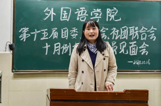 (文/张世瑾 范期明 摄/罗宁晞 李昕月 张芷艺)淅雨渐停,朗夜无风。10月16日晚七点,米兰网页版第十五届团委、学生会、社团联合会十月例会暨新成员见面会在12教104教室举行。参加此次会议的有团委书记许泽琼老师、辅导员杜岳青老师、刘庸老师、方大鹏老师、陈颖老师,以及学生会各部门和社团联合会相关负责人。