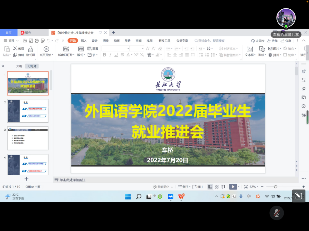 车桥老师以ppt形式对于今年学院就业目标以及后续就业工作面临的新形势与新问题进行了详细分析,就下一步工作规划向与会老师们做了详细说明。对于如何更好的与未就业同学进行谈心谈话,更好的进行就业帮扶,车老师也分享了“用心+用情”等策略,帮助各班主任更好开展就业帮扶工作。