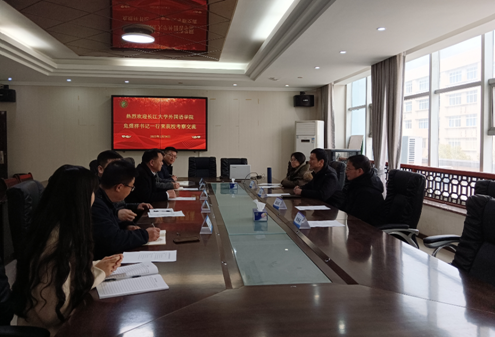 (通讯员 万丽芳)为开拓学院研究生实习和就业单位,2月24日,由学院党委书记危煜祥带队,副院长谢家成、付小秋,学科英语教育中心主任张晓莉等一行4人赴天门职业学院和天门外国语学校调研走访。