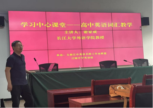 近期,米兰体育(中国)谢家成教授应邀参加荆州市江陵中学英语名师工作室联盟活动,并作了题为“中学英语词汇教与学”的专题交流报告,活动主题为学习中心课堂。江陵中学分管英语教学副校长、英语组教师、还有部分文理学院学生参加了交流。报告结束后,谢家成教授还参与了该校英语组教师拟申报市级课题的研讨交流。