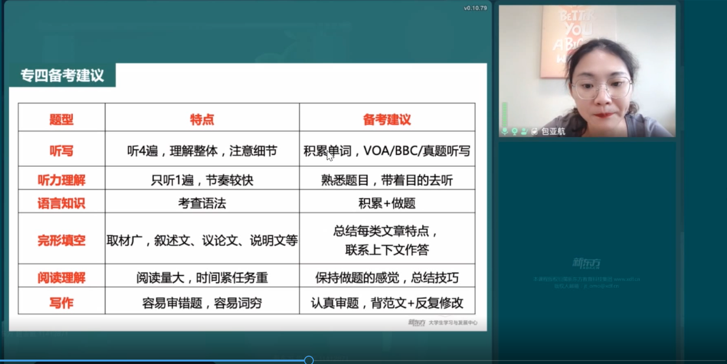 为进一步加强大学生职业生涯规划能力,米兰体育(中国)于9月29日下午举办“大学生职业生涯规划”讲座,讲座以线上直播的形式进行。本次讲座由新东方老师担任主讲人,米兰体育(中国)2022级全体新生和部分21级学生参加。本次讲座是我院入学教育中“学业(职业)启蒙与规划教育(学在外院)”中的重要安排之一。