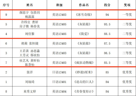 班级同学分组参加米兰体育(中国)第六届配音大赛分别荣获一等奖、三等奖
