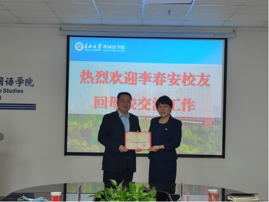 下午,在座谈中,李春安校友结合自己的创业经历以及目前所从事的事业,就乡村中小学英语教学中存在的问题和“双减”政策背景下英语师范生人才培养的目标等问题与学院领导进行了交流。双方还就共同开展中小学英语教学法的研究,广泛交流了意见建议。座谈会上,院长谈宏慧给李春安校友颁发了“大学生创新创业导师”证书,并对李春安校友长期以来关心支持学院改革发展发示感谢。李春安校友也表示将继续关注米兰体育(中国)的发展,并在学院学科建设、人才培养等方面贡献自己的力量。