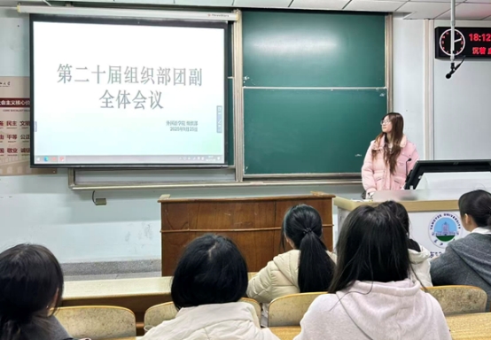 会议围绕推优入党、智慧团建、主题团日、团费收缴四项核心工作展开。主持人李蕴琦逐项演示操作流程,明确关键时间节点、材料规范及常见注意事项。随后,组织部部长朱彤作补充说明并针对2025年下半年推优入党工作分阶段解读了各重要环节,确保程序公开透明、责任落实到位。