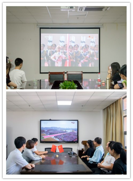 上午9:00,我院组织在校师生在文科大楼712会议室集中观看国庆阅兵式直播。同学们聚精会神的注视着正在播放的开幕式宣传片,随着宣传片画面的变换,阅兵时间越来越近,同学们的情绪高涨,时而为阅兵仪式的场面感叹不已,时而为英姿飒爽的解放军战士加油点赞。10:00,阅兵式正式开始,整齐划一的姿势,雄浑嘹亮的番号,铿锵有力的步伐,走过天安门前,接受习近平主席的检阅,充满着庄重的仪式感和厚重的历史感,让同学深刻体会到了民族认同感和自豪感。