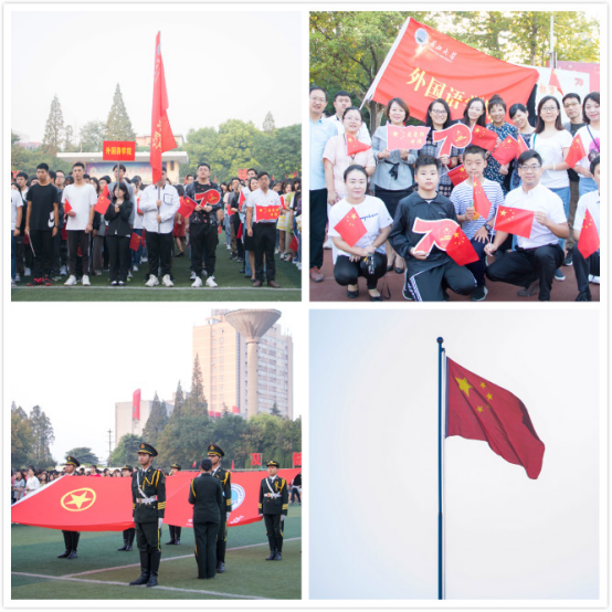 上午7:00,全校参加升旗的同学在国旗前整齐站好,进行升旗仪式的第一项:升国旗,唱国歌。我院的同学神情坚毅,面向国旗,饱含深情的对国旗放声高唱国歌,浑厚有力的男声和温柔细腻的女声混合在一起表现了对国旗的最崇高的敬意。随后,全体同学朗诵《少年中国说》选段,“我少年中国,与天不老;我中国少年,与国无疆!”紧接着进行第三项,在青马班学生代表的带领下,在场所有学生举起右手,重温入团誓词。最后,田径场所有师生集体歌唱《我和我的祖国》,以这样的方式告诫同学们要勤奋学习,艰苦奋斗。
