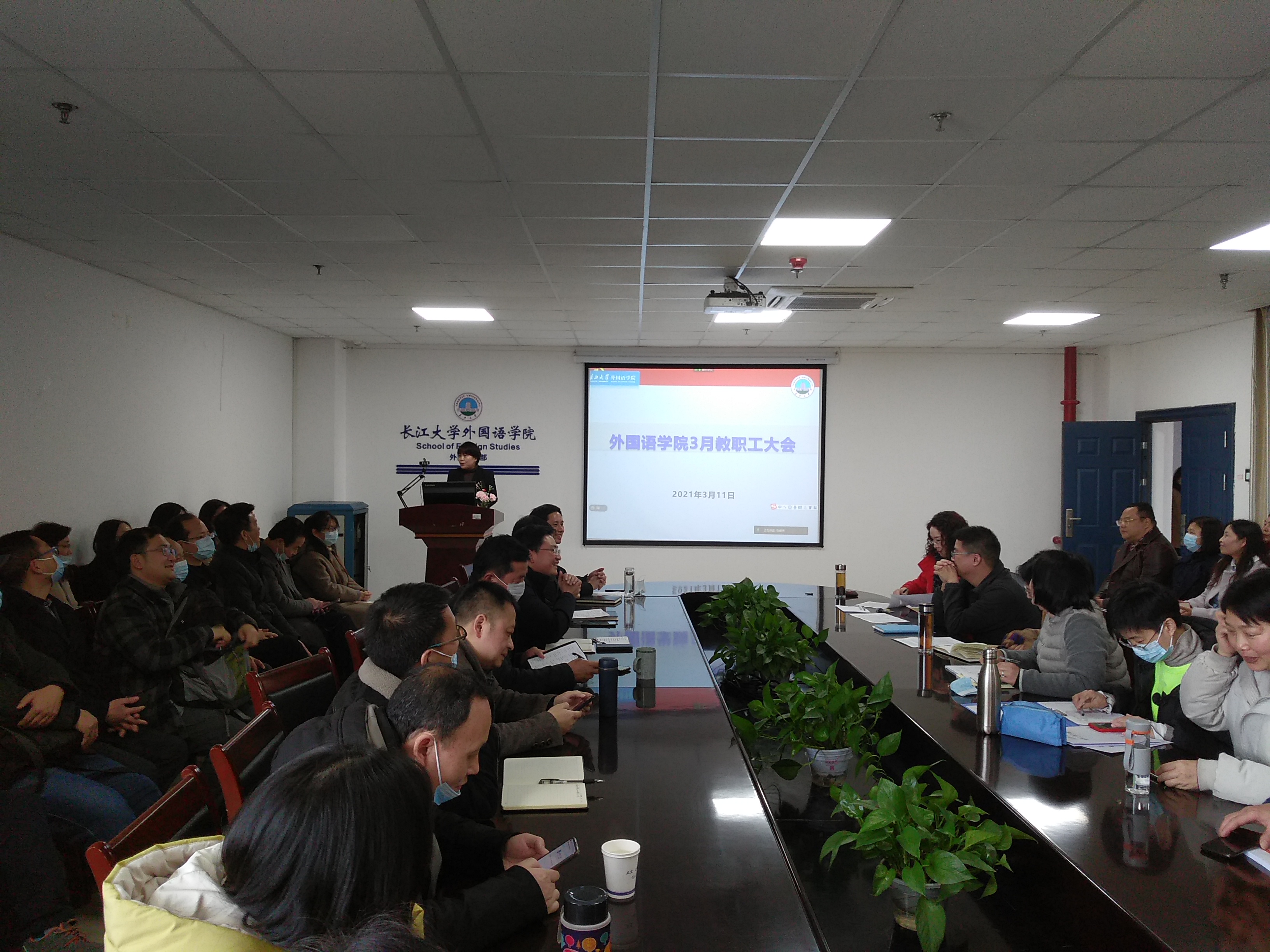 3月11日下午,学院在文科楼712会议室召开全院教职工大会,安排部署学院工作,开展3月教职工政治理论学习。会议由院长谈宏慧主持。