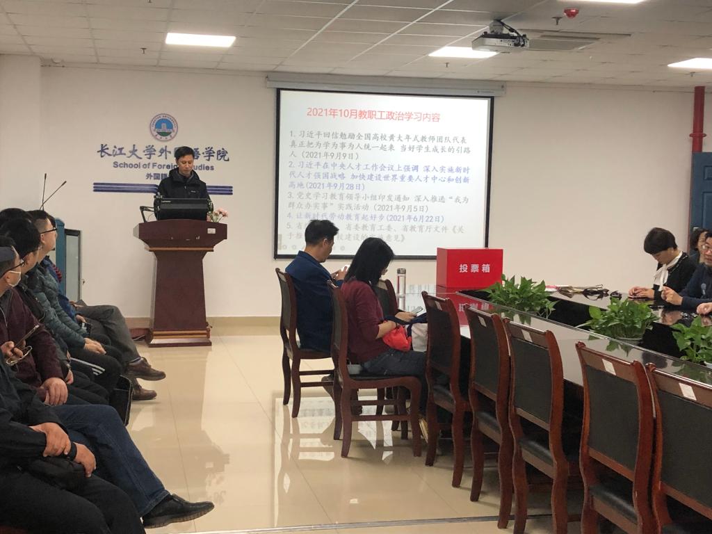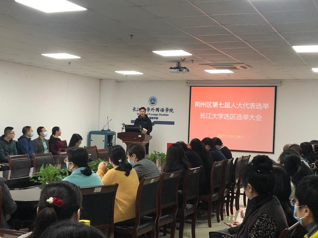 10月26日上午,学院在文科楼712会议室召开教职工大会,开展教职工政治理论学习,并进行荆州区人大代表的选举。会议由党委书记危煜祥主持。