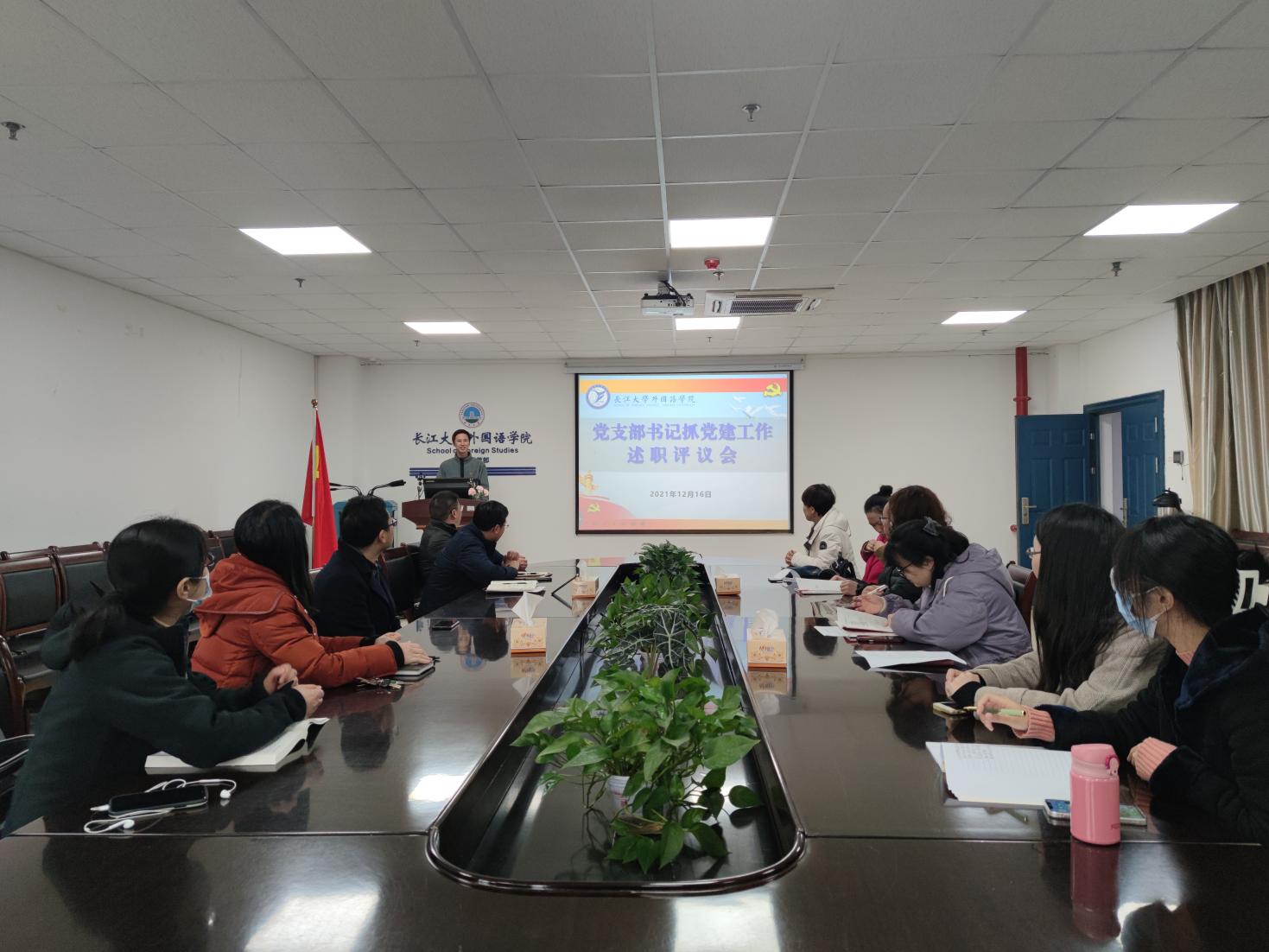 会上,公外教师党支部书记马春花、英语教师党支部书记段友国、日语和行政教师党支部书记常芬、武汉校区教师党支部书记唐芳、研究生党支部书记许泽琼、本科生党支部书记童超,分别就2021年抓支部党建工作的有关情况进行了汇报,既总结了成绩,也指出了不足,分析了存在的原因并提出了工作设想。