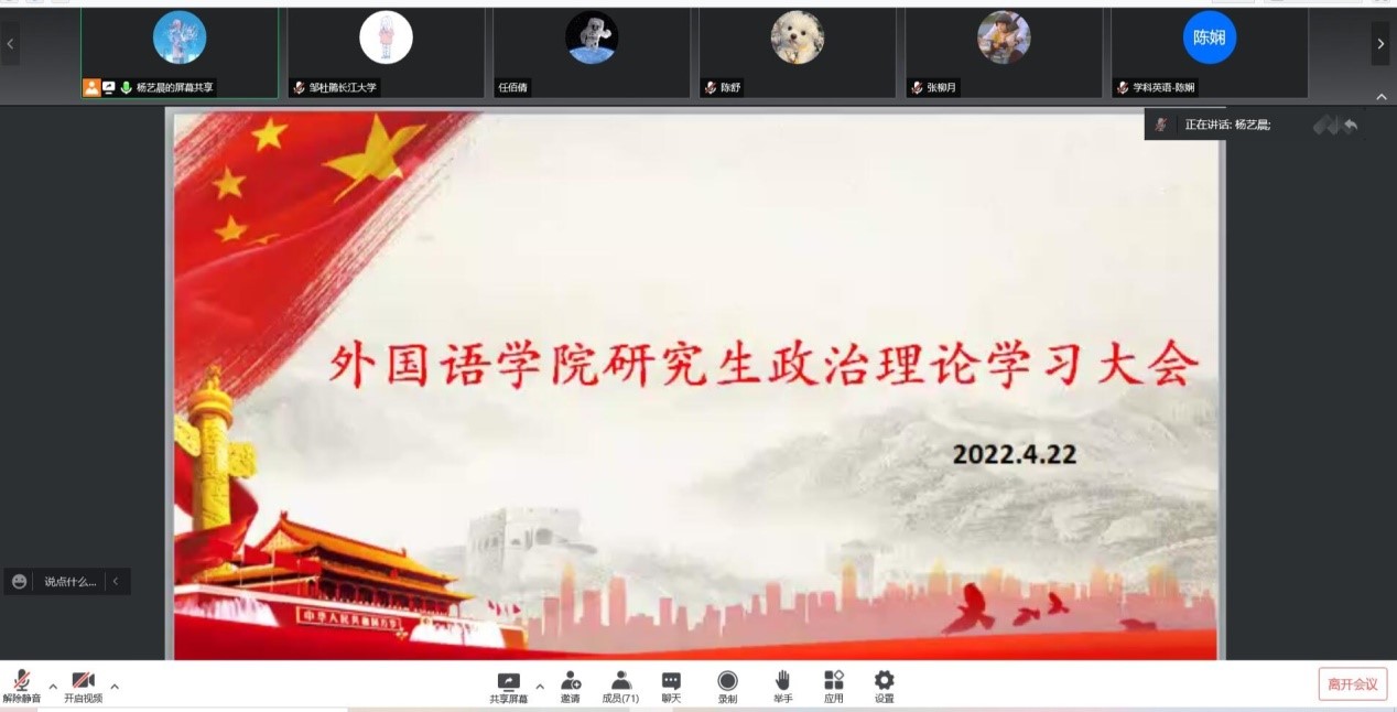 (通讯员:杨艺晨)2022年4月22日晚上7点,为进一步学习习近平总书记的重要讲话精神和相关文件,米兰体育(中国)以线上会议的形式召开了四月份研究生思想政治理论学习大会。