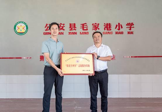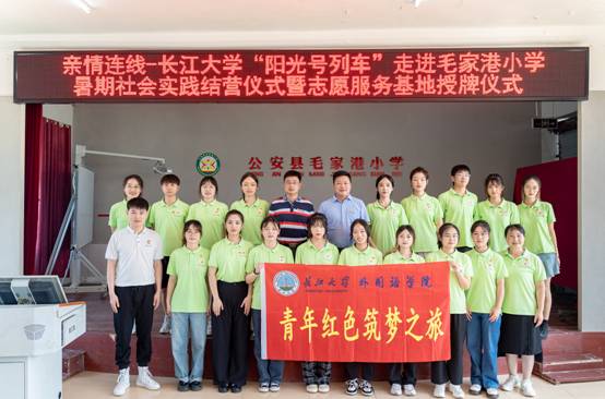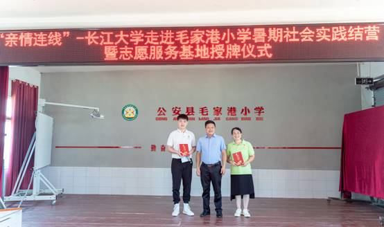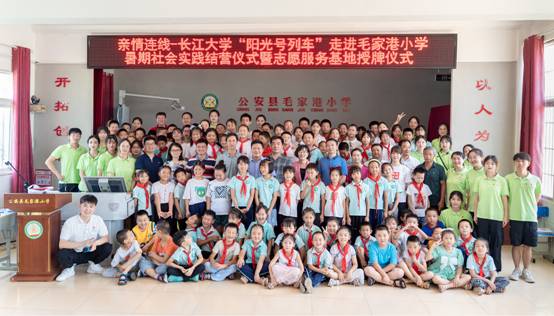 (通讯员:许泽琼、赵宇杰、吴晨宇)近日,米兰体育(中国)“阳光号列车”暑期支教活动在公安县毛家港小学圆满收官,并举行了暑期社会实践结营仪式暨志愿服务基地授牌仪式。共青团荆州市委副书记谭亮魁、公安县委宣传部副部长张俊以及米兰体育(中国)、公安县毛家港小学主要负责人等出席,19名志愿者和120余名小学生参加了仪式。