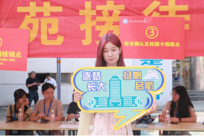 长江大学阳光号列车志愿者协会工作人员身穿“阳光号列车”的工作马甲,分布于学校各个标志性建筑及拍照背景板前,用镜头捕捉新生初入大学校园的难忘瞬间,帮助他们纪念新征程的开始。