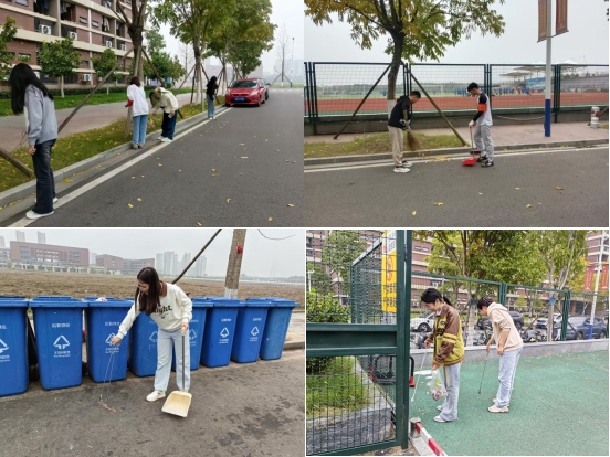 下午2点30分,日语12401班的同学们在四食堂前集合,在年级辅导员童超老师和班委的组织下,同学们分组领取扫帚、撮箕、垃圾夹等清洁工具,前往指定区域进行清扫。同学们在劳动中热情高涨,积极投入,有的专注清扫落叶,有的仔细捡拾杂物,有的认真清理道路旁的垃圾。在田径场、23栋和24栋宿舍周边等地,大家分工协作,互帮互助,展现出良好的团队精神。