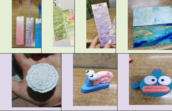 手工创作区同时开展了“漆韵书签”和“黏土筑月”两项活动。新生们或精心调配色彩,制作独具个性的漆制书签;或巧手捏制黏土,创作出栩栩如生的作品。手工制作不仅激发了创意,更在协作中增进了同窗情谊。