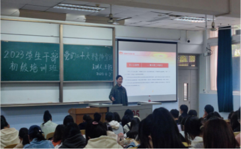 (文/张肖慧子 图/许姗姗)4月2日下午,外国语学初干班第一次授课在13教105教室进行,长江大学青年宣讲队成员——医学院分团委书记王乾以“在新时代党的阳光照耀下前进”为题给初干班学员进行了党的二十大精神的宣讲。会议由米兰体育(中国)分团委书记许泽琼主持,学院107名初干班成员参加了培训。