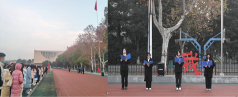 12月4日早上7:00,米兰体育(中国)全体师生在升旗仪式后,开展了宪法学习活动。辅导员何稳发表国旗下的讲话,号召大家知法懂法守法护法。随后4名学生代表领读,在操场上开展了“宪法晨读”活动。