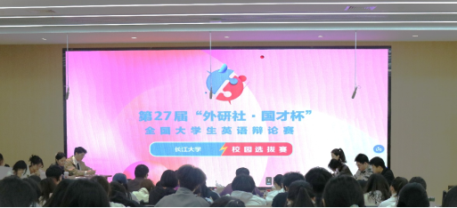 (文/申珊琪 图/黄昕怡)3月27日下午,第27届“外研社·国才杯”全国大学生英语辩论赛长江大学校园选拔赛在16教A110顺利进行,此次校园选拔赛吸引了长江大学众多同学踊跃报名现场观摩。