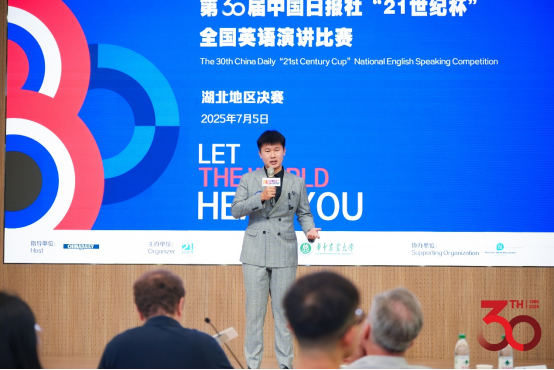 (通讯员 李以尧)7月5日,第30届中国日报社“21世纪杯”全国英语演讲比赛湖北地区决赛在华中农业大学举行。我校传媒学院2023级播音与主持艺术专业阮子涵同学、米兰体育(中国)商务英语专业2024级夏培韬同学在米兰体育(中国)马欣、罗伟、何赟老师和传媒学院李以尧老师的指导下分别获得湖北赛区一等奖、三等奖,阮子涵同学晋级本赛事全国半决赛。