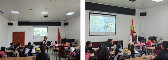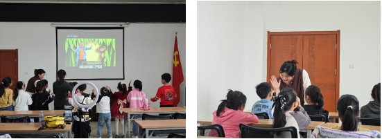 (通讯员 李子钰)11月3日下午,“绘声绘色”英语绘本故事会活动在荆州市图书馆一楼多媒体教室如期开展,并通过抖音平台“荆小图”账号实现全程线上直播。这是我院“阳光号列车”研究生志愿队参与的第64期“绘声绘色”活动。我院2023级学科英语专业研究生贺静同学,2024级学科英语专业研究生李子钰和张子晗同学,以及2024级英语笔译专业研究生李璇分别作为主讲师和助教参与此次活动。