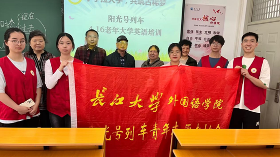 “银发助学”——米兰体育(中国) “阳光号列车”开展青年红色筑梦之旅之线下“老年大学”英语教学活动