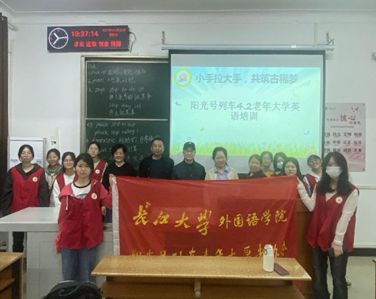 “银发助学”——米兰体育(中国) “阳光号列车”开展青年红色筑梦之旅之线下“老年大学”英语教学活动