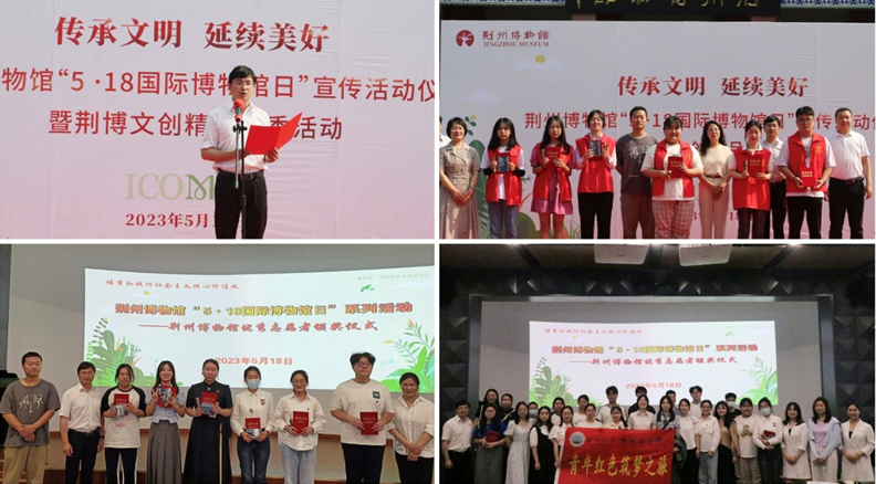 (通讯员 梅碧才)5月18日上午,荆州博物馆在其陈列大楼前举办“5·18国际博物馆日”宣传活动仪式暨“荆博文创精品走秀活动”。我校米兰体育(中国)“阳光号列车”40余名志愿者受邀参加活动。