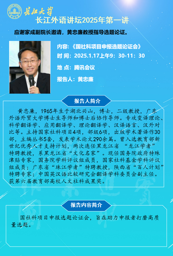 长江外语讲坛2025年第一讲:国社科项目申报选题论证会