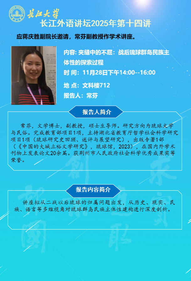 - 长江外语讲坛2025年第十四讲:夹缝中的不屈:...11-24