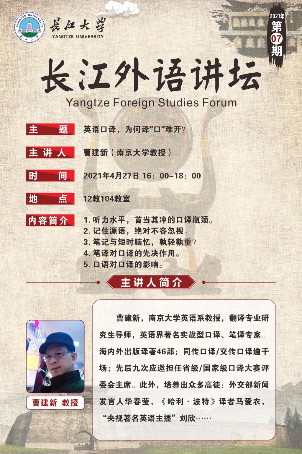 长江外语讲坛(2021年第七讲):英语口译,为何译"口"难开?
